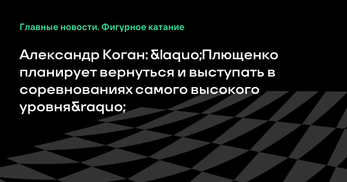 Плющенко планирует вернуться и выступать в соревнованиях самого высокого уровня, и мы его в этом поддерживаем», – рассказал Коган.