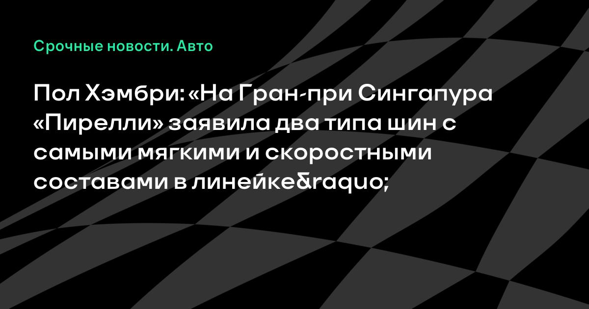 Пол Хэмбри: «На Гран-при Сингапура «Пирелли» заявила два типа шин с самыми мягкими и скоростными составами в линейке»