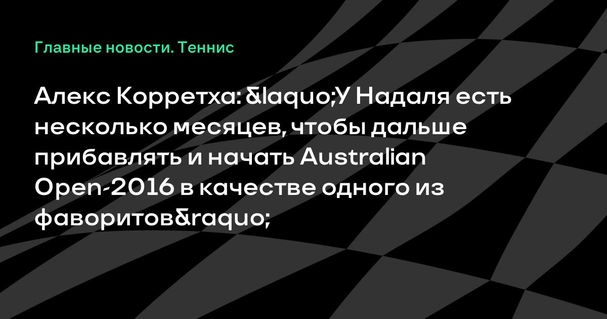 Алекс Корретха: «У Надаля есть несколько месяцев, чтобы дальше прибавлять и начать Australian Open-2016 в качестве одного из фаворитов»
