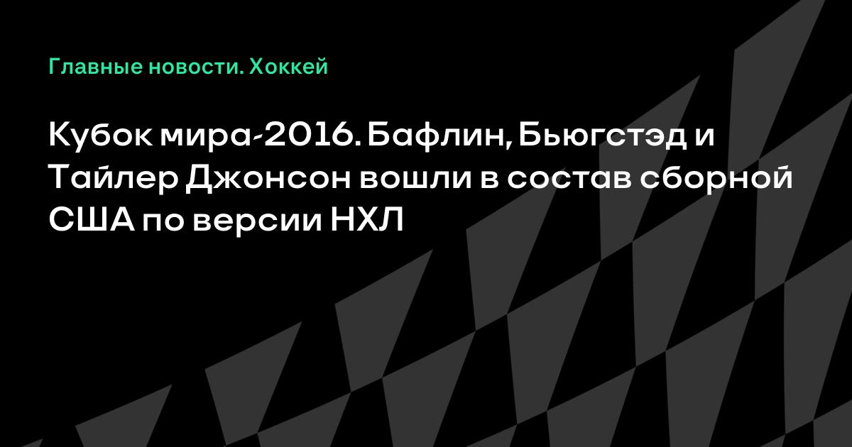 Кубок мира-2016. Бафлин, Бьюгстэд и Тайлер Джонсон вошли в состав сборной США по версии НХЛ