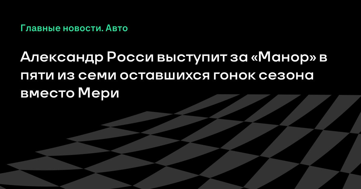 Росси дебютирует в «Формуле-1» на Гран-при Сингапура, заменив в составе «Манора» Роберто Мери.