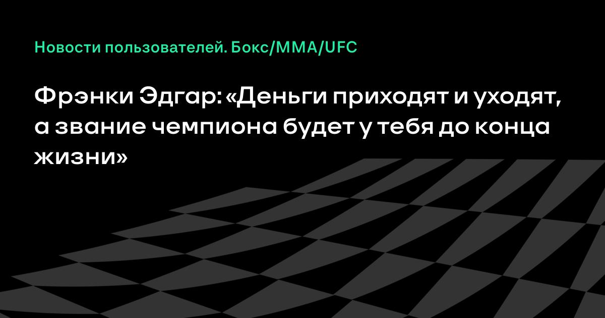 Фрэнки Эдгар: «Деньги приходят и уходят, а звание чемпиона будет у тебя до конца жизни»