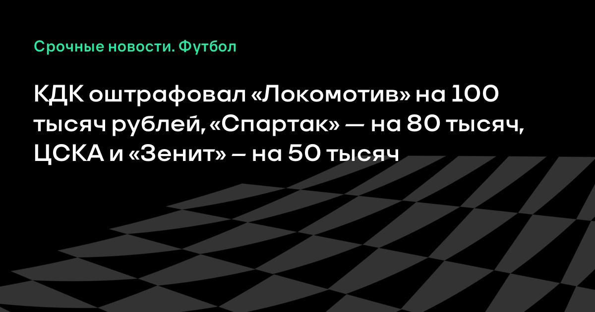 КДК оштрафовал «Локомотив» на 100 тысяч рублей, «Спартак» — на 80 тысяч, ЦСКА и «Зенит» – на 50 тысяч
