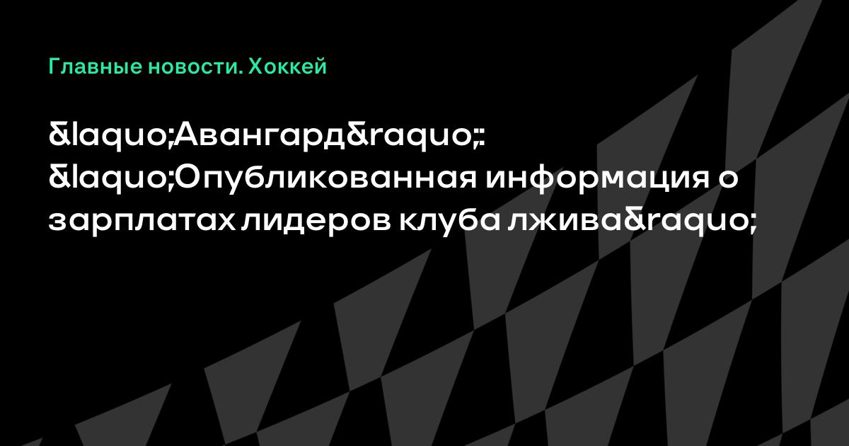 «Авангард»: «Опубликованная информация о зарплатах лидеров клуба лжива»