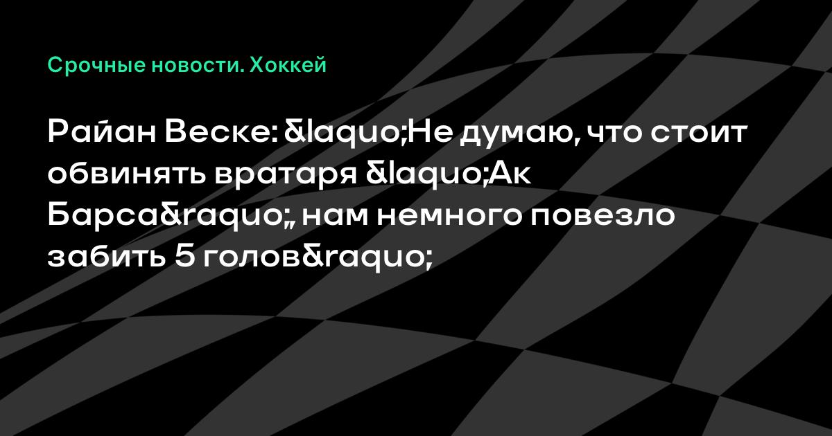 Райан Веске: «Не думаю, что стоит обвинять вратаря «Ак Барса», нам немного повезло забить 5 голов»