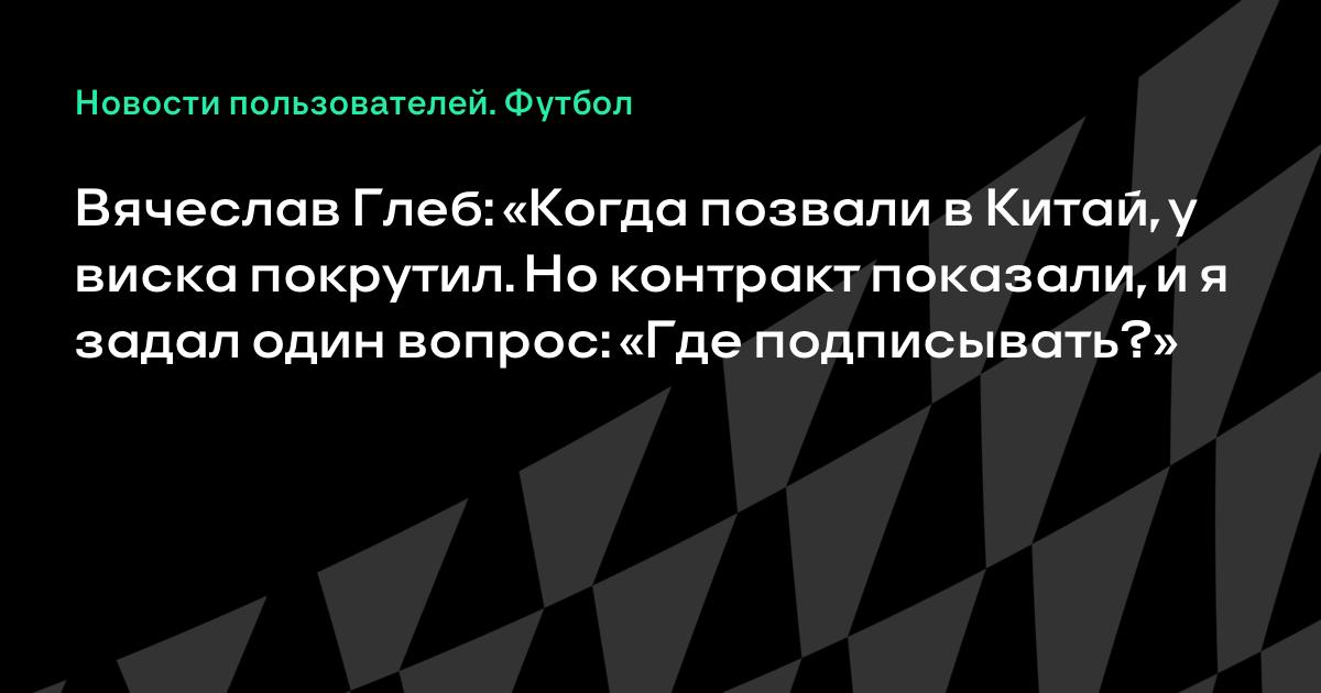 Вячеслав Глеб: «Когда позвали в Китай, у виска покрутил. Но контракт показали, и я задал один вопрос: «Где подписывать?»