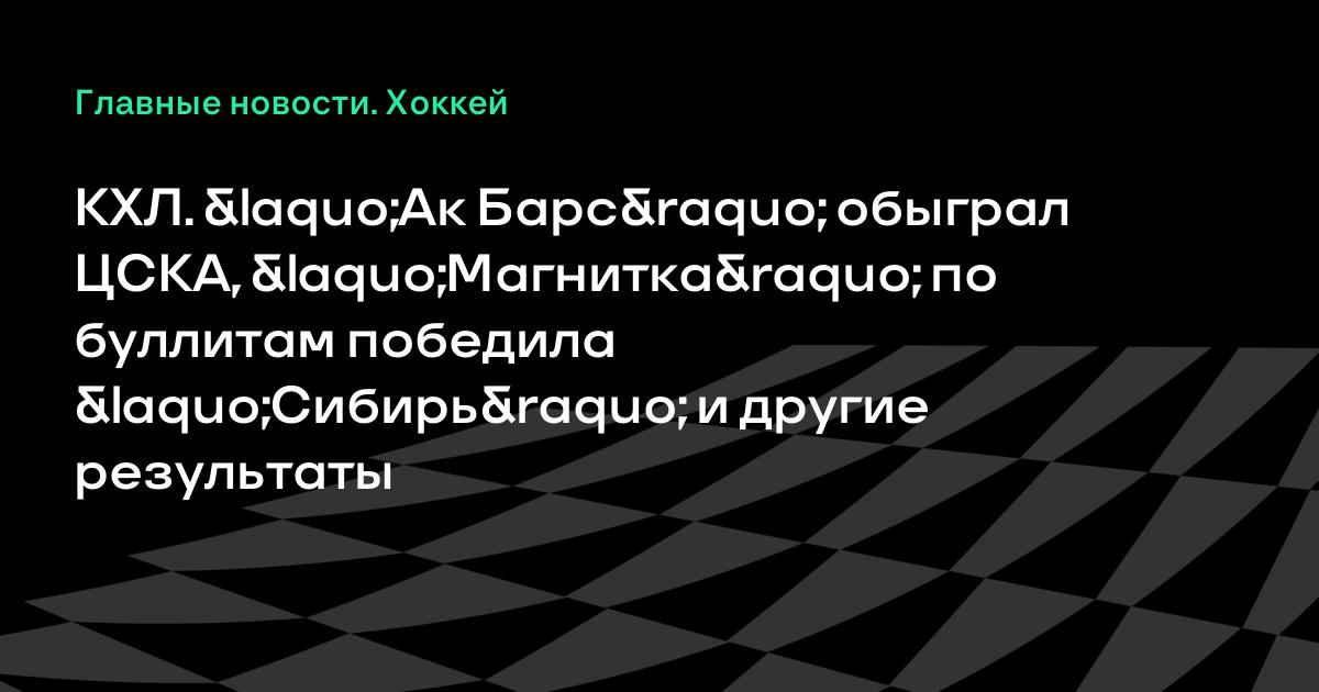 КХЛ. «Ак Барс» обыграл ЦСКА, «Магнитка» по буллитам победила «Сибирь» и другие результаты