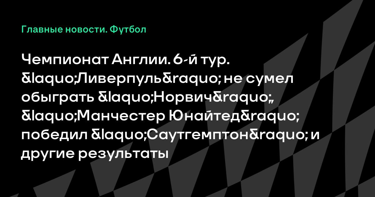 Чемпионат Англии. 6-й тур. «Ливерпуль» не сумел обыграть «Норвич», «Манчестер Юнайтед» победил «Саутгемптон» и другие результаты