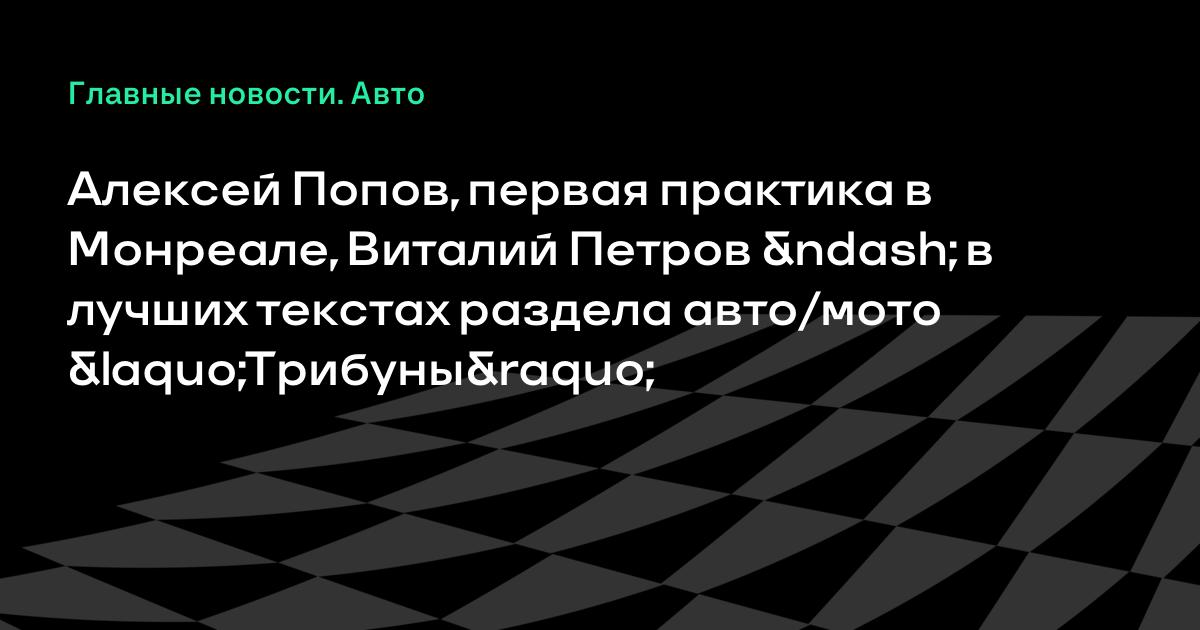 Алексей Попов, первая практика в Монреале, Виталий Петров – в лучших текстах раздела авто/мото «Трибуны»