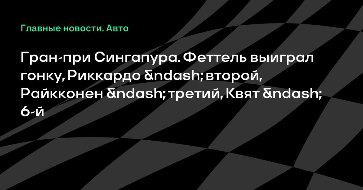 Гран-при Сингапура. Феттель выиграл гонку, Риккардо – второй, Райкконен – третий, Квят – 6-й