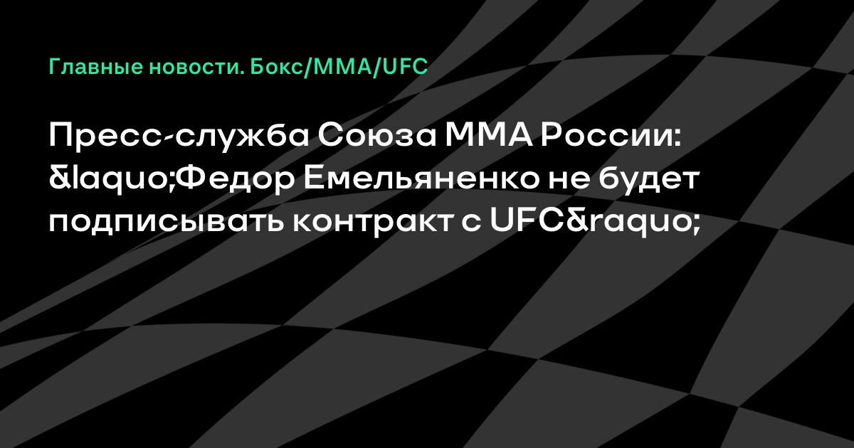 Российский боец смешанного стиля Федор Емельяненко, объявивший о дате проведения первого боя после возобновления карьеры, не будет подписывать контракт с UFC. Об этом сообщила пресс-секретарь Союза смешанных единоборств (ММА) России Юлия Куклина.