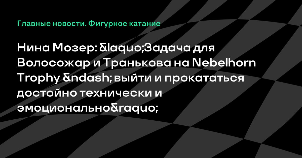Нина Мозер: «Задача для Волосожар и Транькова на Nebelhorn Trophy – выйти и прокататься достойно технически и эмоционально»