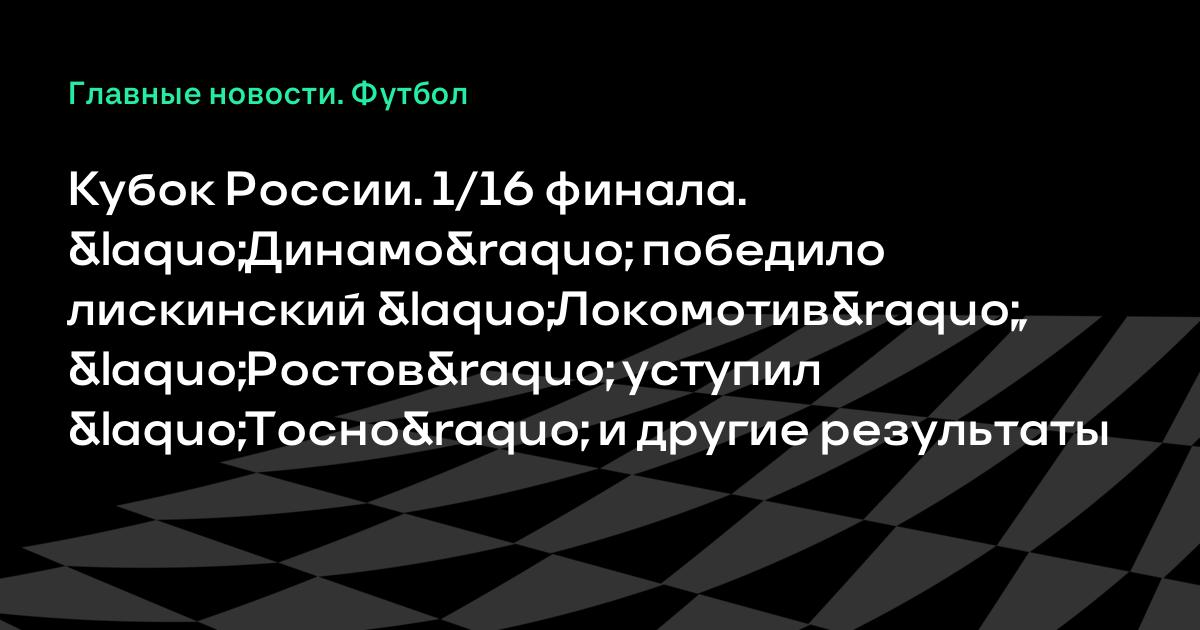 Кубок России. 1/16 финала. «Динамо» победило лискинский «Локомотив», «Ростов» уступил «Тосно» и другие результаты