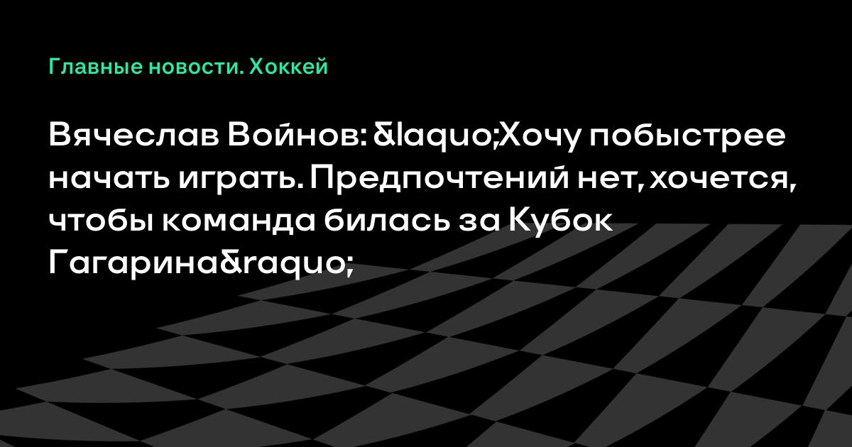 Вячеслав Войнов: «Хочу побыстрее начать играть. Предпочтений нет, хочется, чтобы команда билась за Кубок Гагарина»