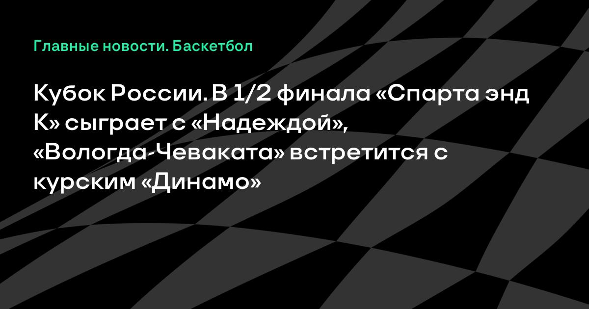 Кубок России. В 1/2 финала «Спарта энд К» сыграет с «Надеждой», «Вологда-Чеваката» встретится с курским «Динамо»