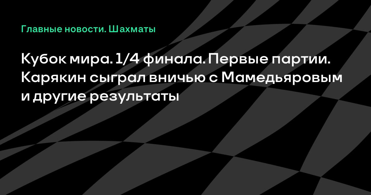 Кубок мира. 1/4 финала. Первые партии. Карякин сыграл вничью с Мамедьяровым и другие результаты