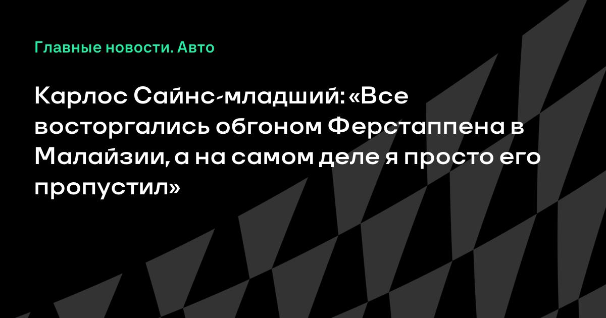 Когда Макс обогнал меня на последнем отрезке гонки в Малайзии, на самом деле это не было обгоном. Я сам пропустил его вперед. Все начали восторгаться этим обгоном, а на самом деле я просто пропустил Макса вперед. Затем то же самое произошло в Монако. Был и еще один такой момент – уже не помню, в какой гонке, – но он был», – цитирует Сайнса-младшего motorsport.