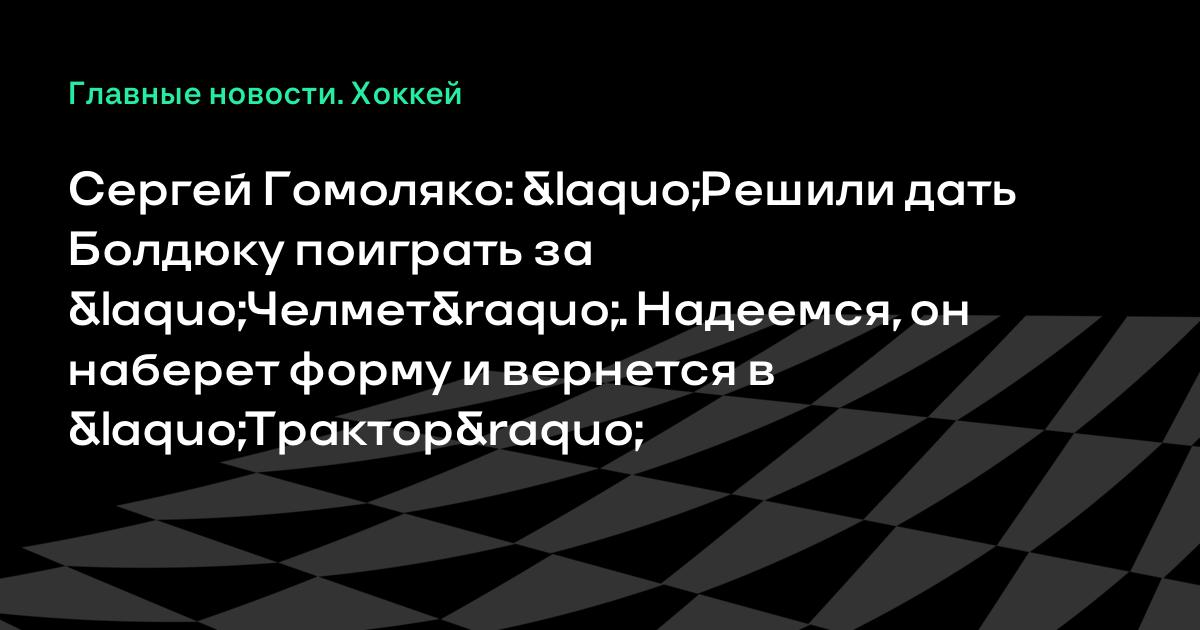 Сергей Гомоляко: «Решили дать Болдюку поиграть за «Челмет». Надеемся, он наберет форму и вернется в «Трактор»