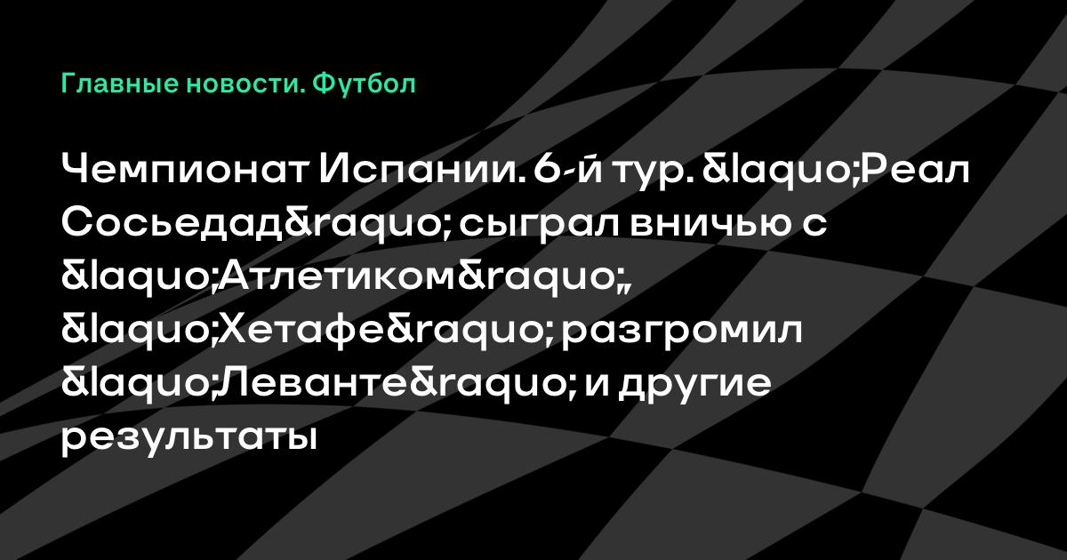 Чемпионат Испании. 6-й тур. «Реал Сосьедад» сыграл вничью с «Атлетиком», «Хетафе» разгромил «Леванте» и другие результаты