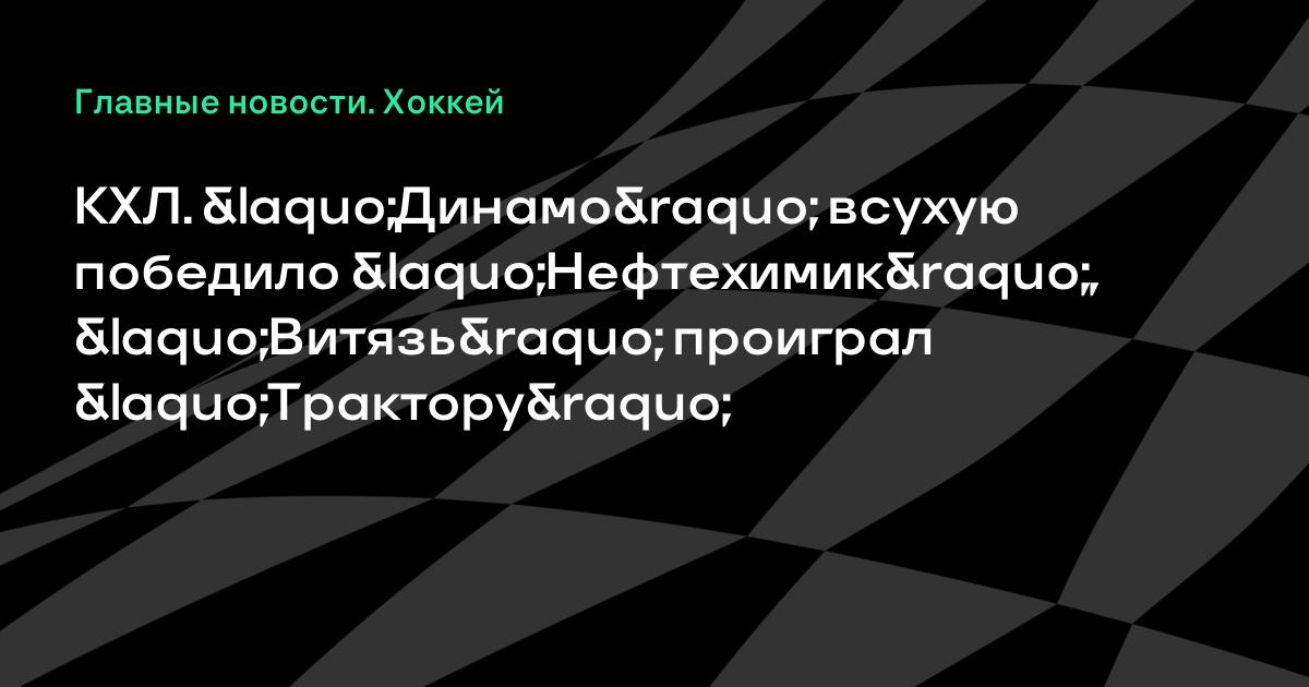 КХЛ. «Динамо» всухую победило «Нефтехимик», «Витязь» проиграл «Трактору»