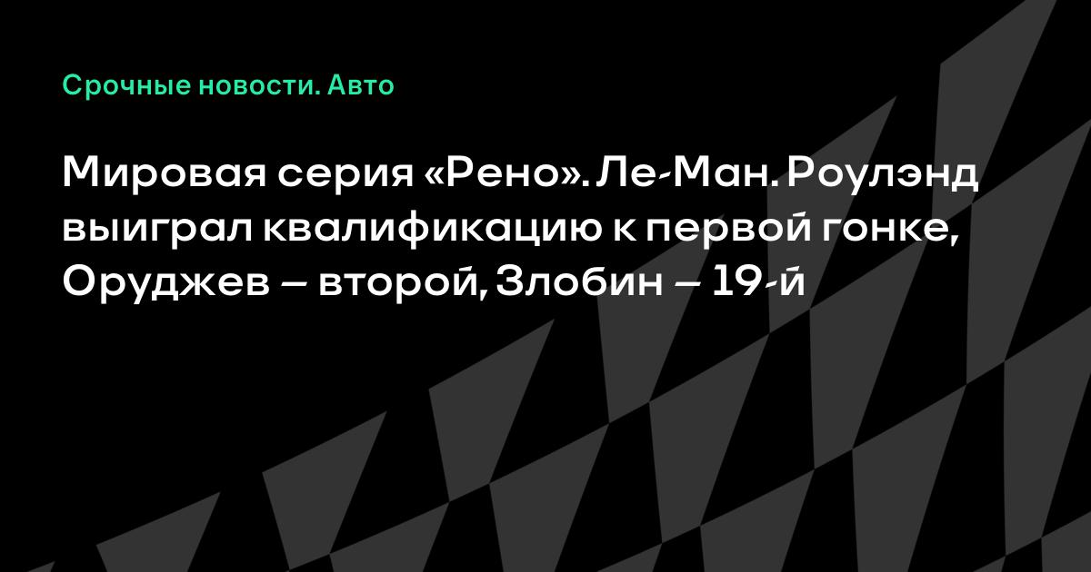 Пилот «Фортека» Оливер Роулэнд выиграл поул в квалификации к первой гонке Мировой серии «Рено» в Ле-Мане. Вторым стал россиянин Егор Оруджев из «Ардена», третим стал Матье Ваксивьер из «Лотуса», новичок серии Никита Злобин из команды «Понс» стал 19-м.