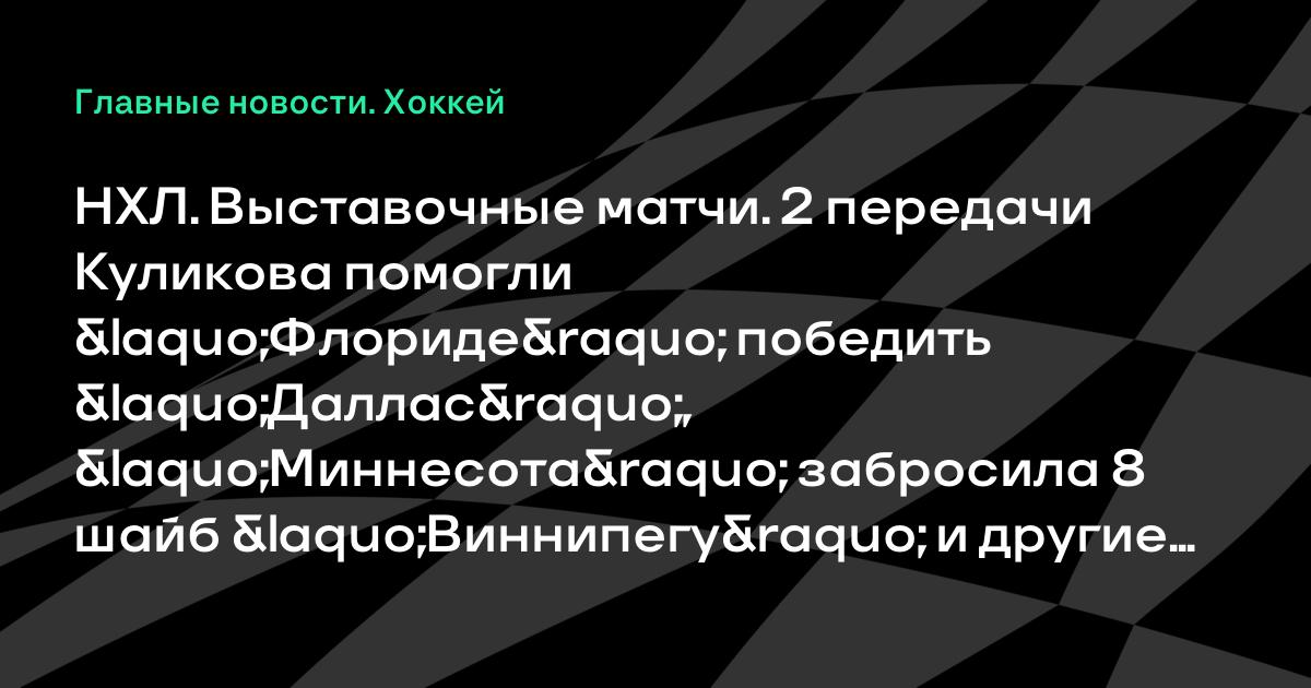 НХЛ. Выставочные матчи. 2 передачи Куликова помогли «Флориде» победить «Даллас», «Миннесота» забросила 8 шайб «Виннипегу» и другие результаты