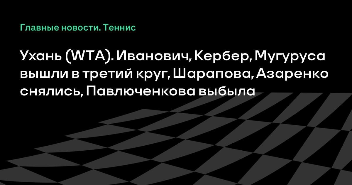 Ухань (WTA). Иванович, Кербер, Мугуруса вышли в третий круг, Шарапова, Азаренко снялись, Павлюченкова выбыла