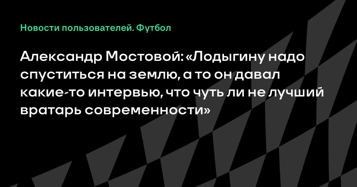 Александр Мостовой: «Лодыгину надо спуститься на землю, а то он давал какие-то интервью, что чуть ли не лучший вратарь современности»