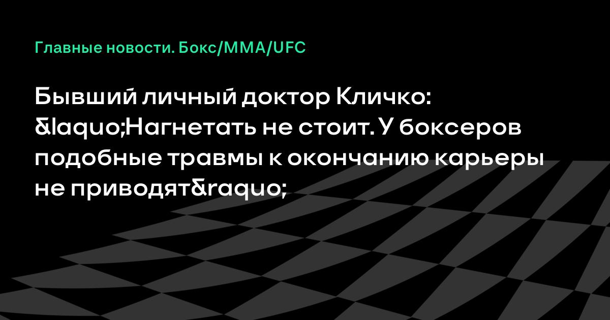 Бывший личный доктор Кличко: «Нагнетать не стоит. У боксеров подобные травмы к окончанию карьеры не приводят»