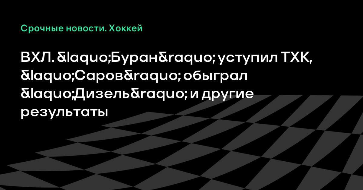 ВХЛ. «Буран» уступил ТХК, «Саров» обыграл «Дизель» и другие результаты