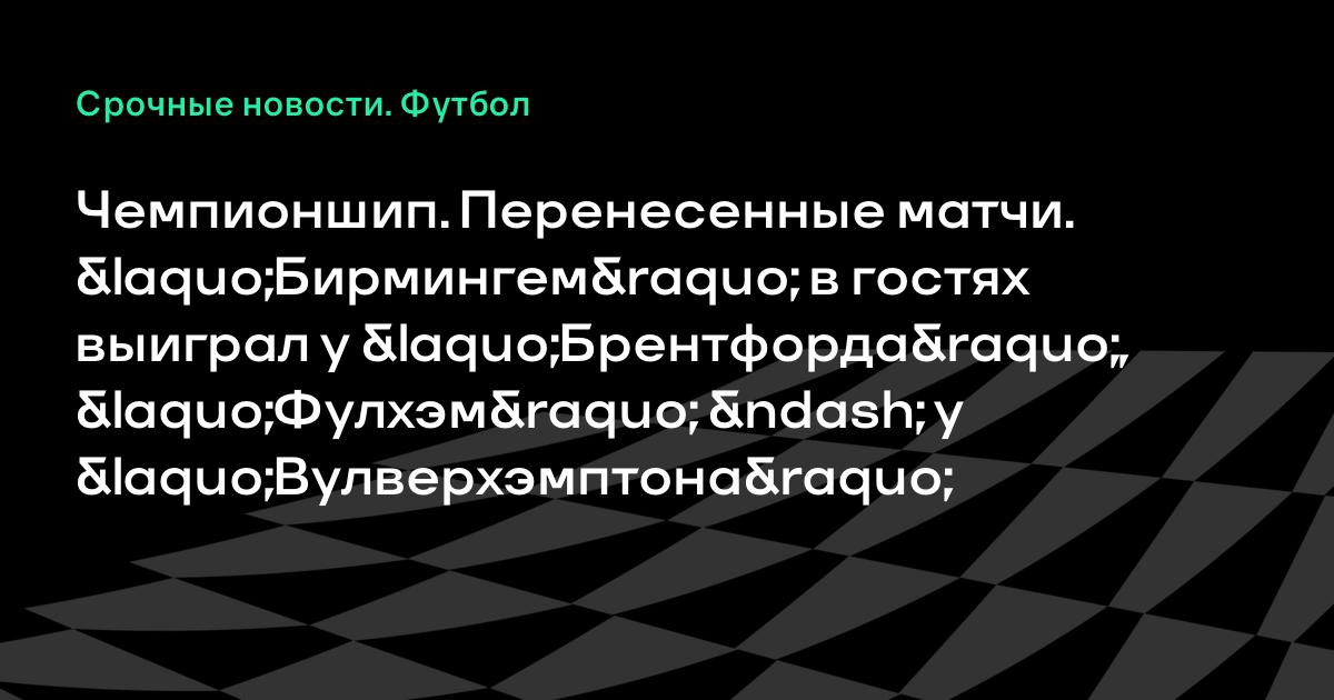 Чемпионшип. Перенесенные матчи. «Бирмингем» в гостях выиграл у «Брентфорда», «Фулхэм» – у «Вулверхэмптона»