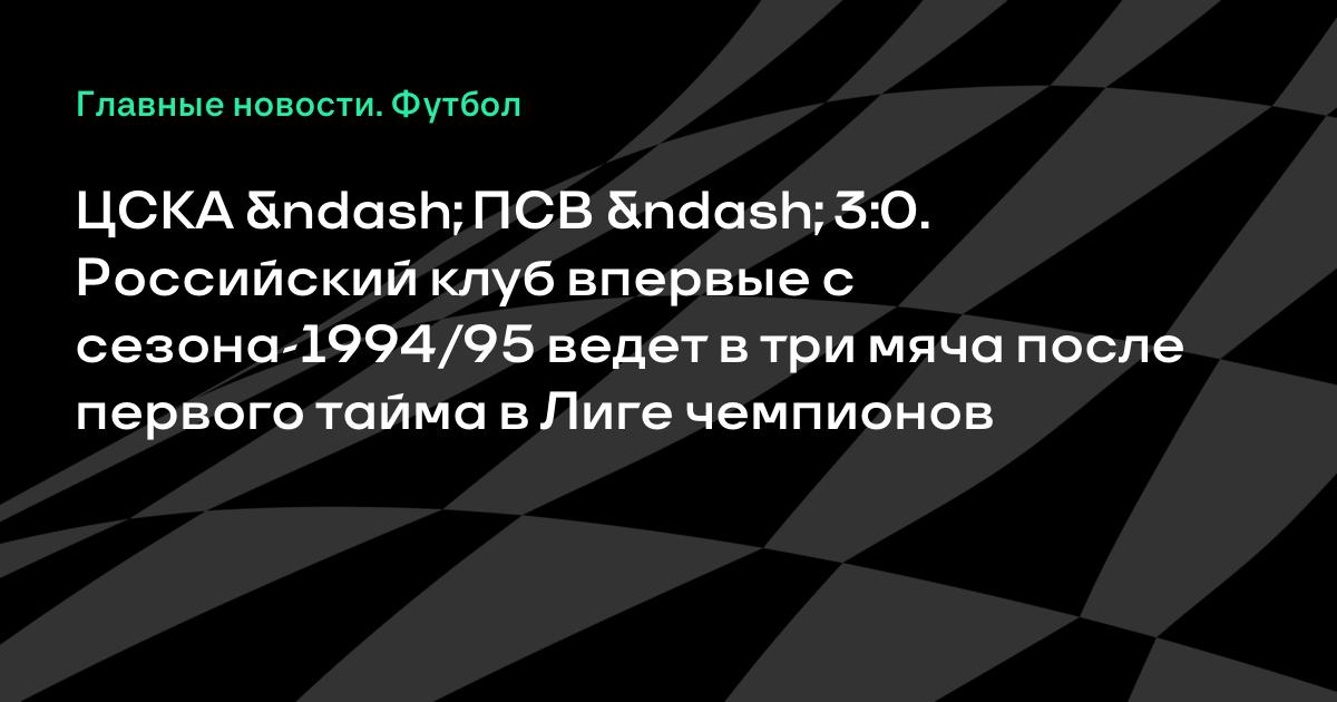 ЦСКА – ПСВ – 3:0. Российский клуб впервые с сезона-1994/95 ведет в три мяча после первого тайма в Лиге чемпионов