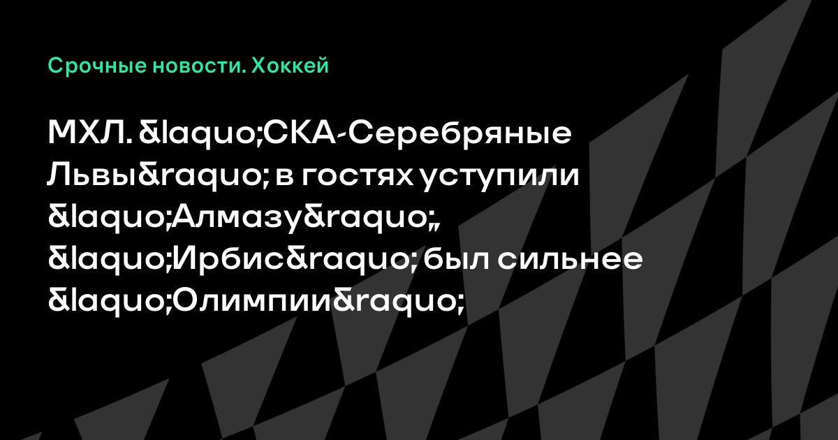 МХЛ. «СКА-Серебряные Львы» в гостях уступили «Алмазу», «Ирбис» был сильнее «Олимпии»