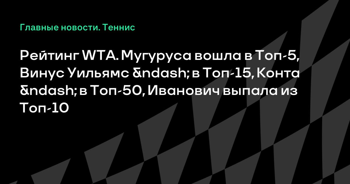 Рейтинг WTA. Мугуруса вошла в Топ-5, Винус Уильямс – в Топ-15, Конта – в Топ-50, Иванович выпала из Топ-10