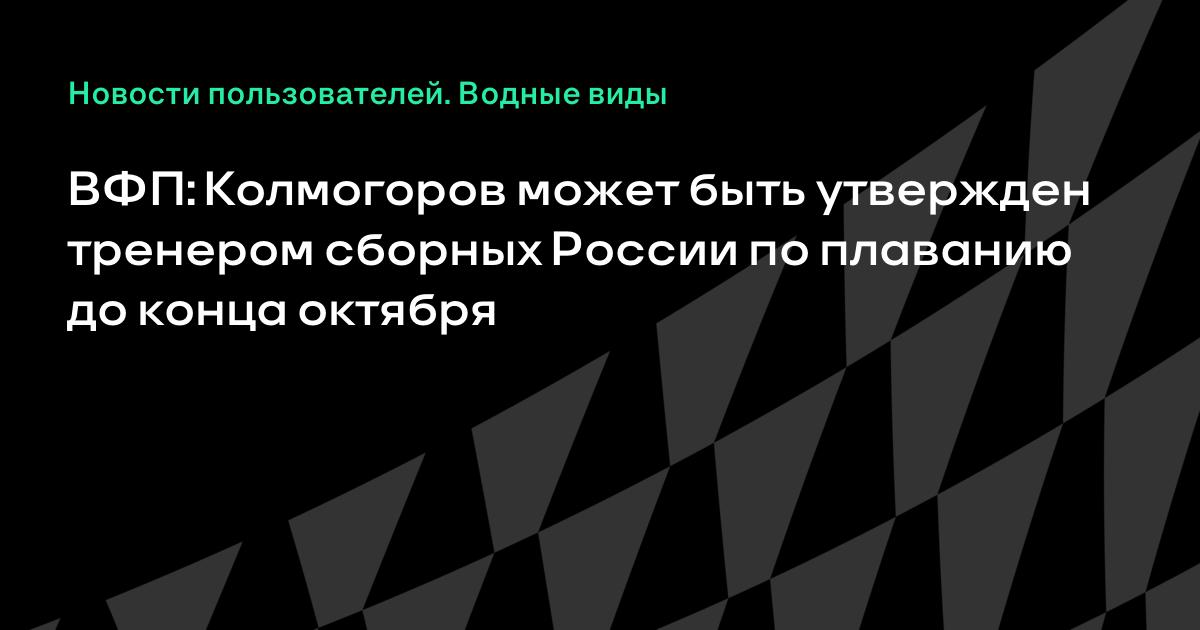 Сергей Колмогоров может быть утвержден Министерством спорта РФ в качестве главного тренера сборных России по плаванию до конца октября. Об этом ТАСС сообщили в пресс-службе Всероссийской федерации плавания (ВФП).