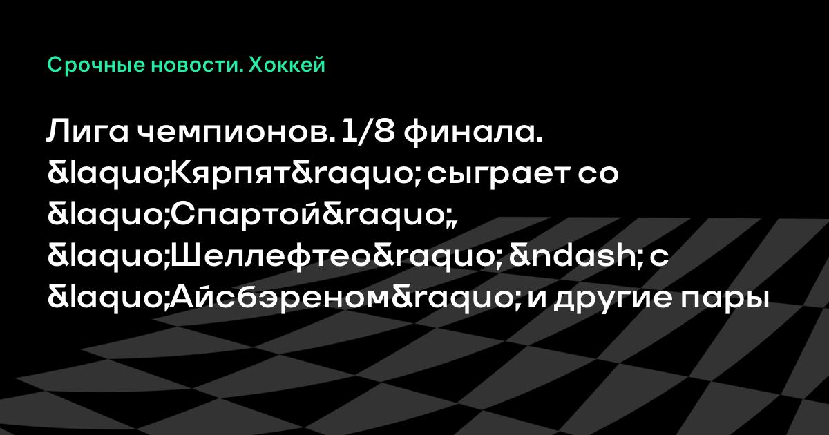 Лига чемпионов. 1/8 финала. «Кярпят» сыграет со «Спартой», «Шеллефтео» – с «Айсбэреном» и другие пары