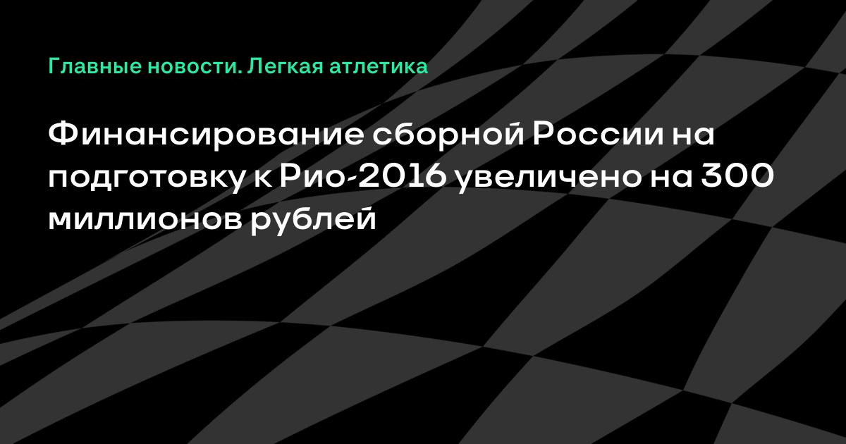 Финансирование сборной России на подготовку к летним Олимпийским играм-2016 в Рио-де-Жанейро увеличено на 300 миллионов рублей.