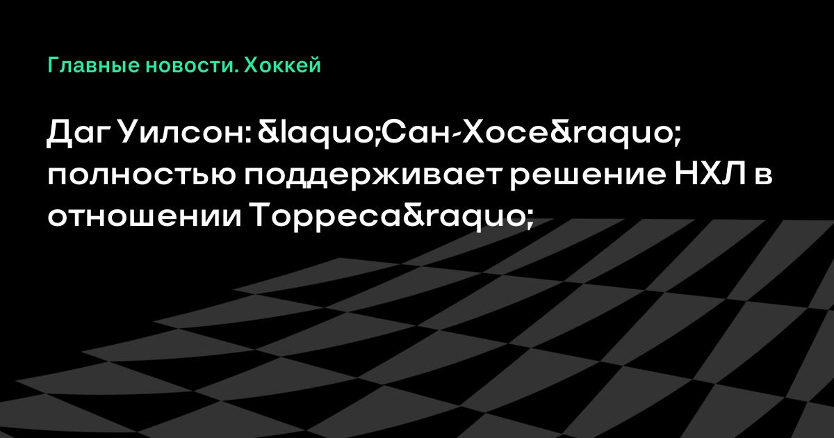 Даг Уилсон: «Сан-Хосе» полностью поддерживает решение НХЛ в отношении Торреса»