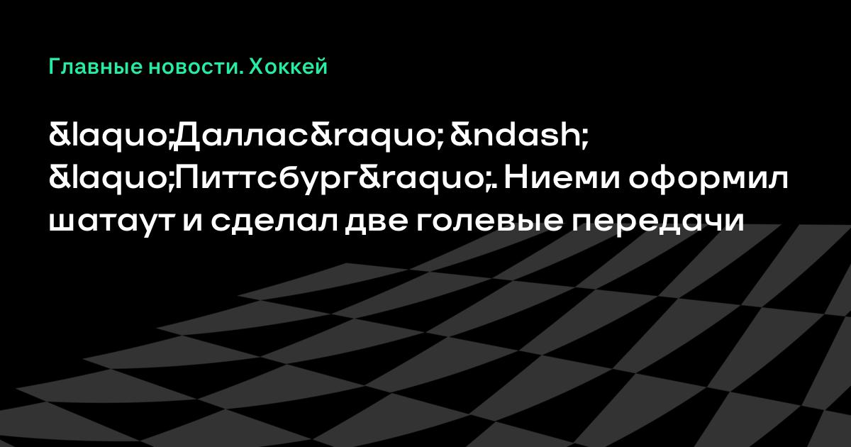 «Даллас» – «Питтсбург». Ниеми оформил шатаут и сделал две голевые передачи