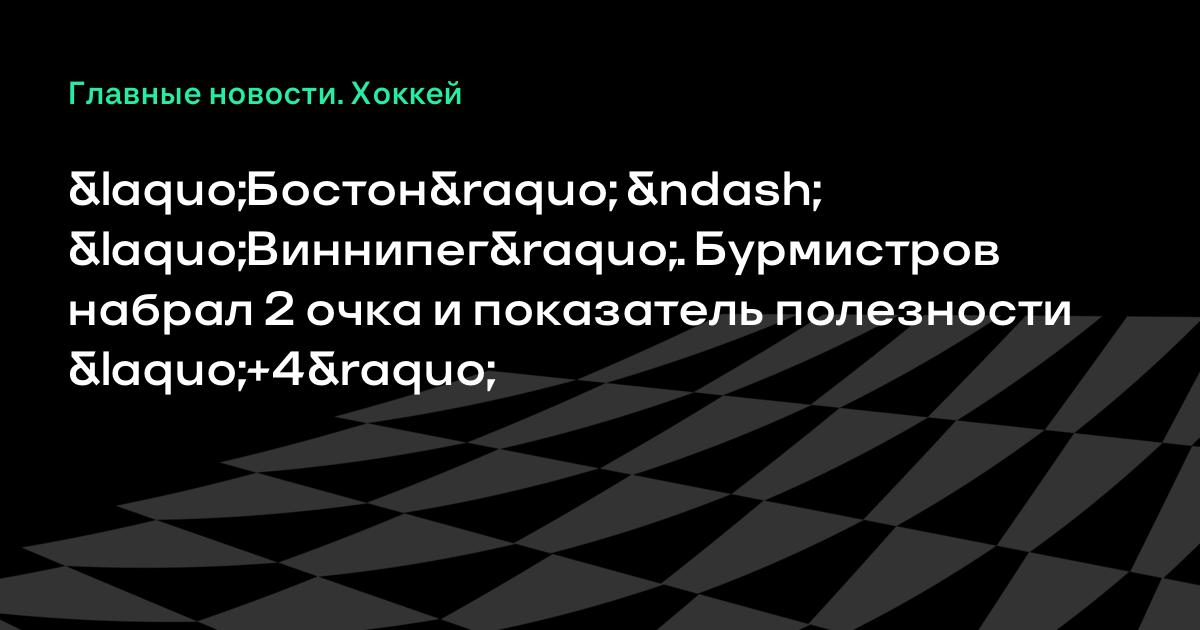 «Бостон» – «Виннипег». Бурмистров набрал 2 очка и показатель полезности «+4»