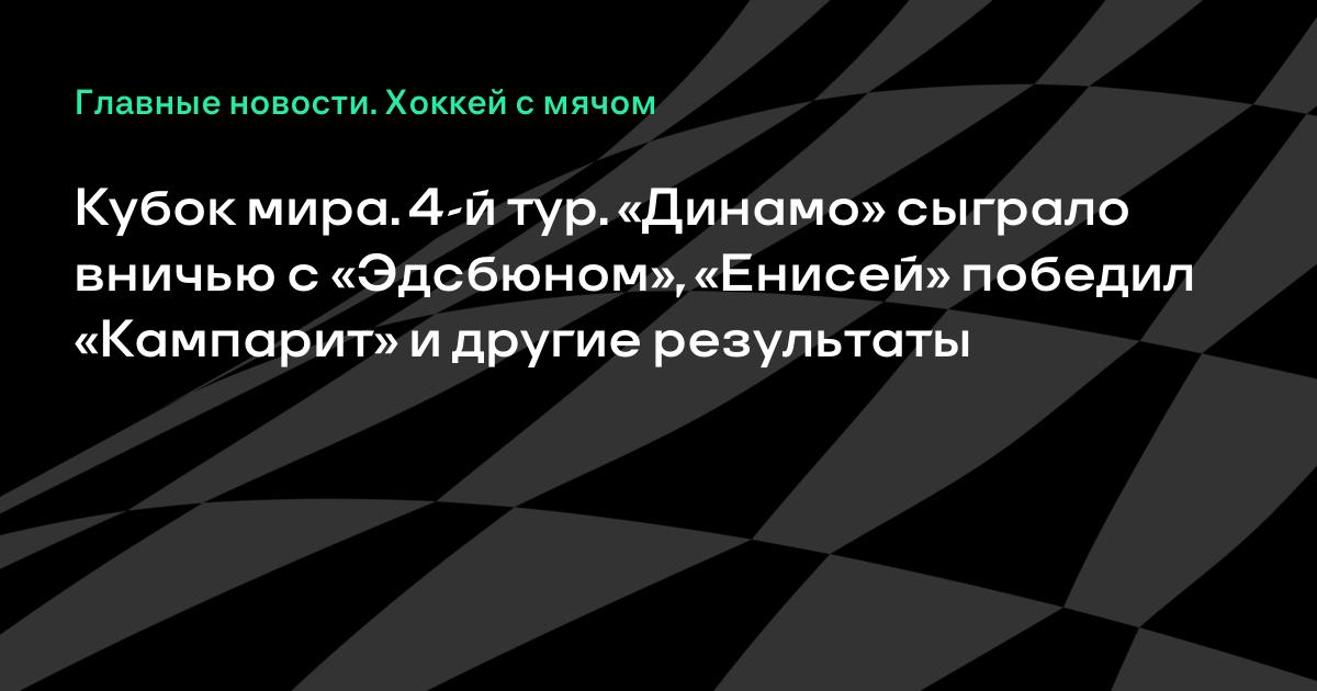 Кубок мира. 4-й тур. «Динамо» сыграло вничью с «Эдсбюном», «Енисей» победил «Кампарит» и другие результаты
