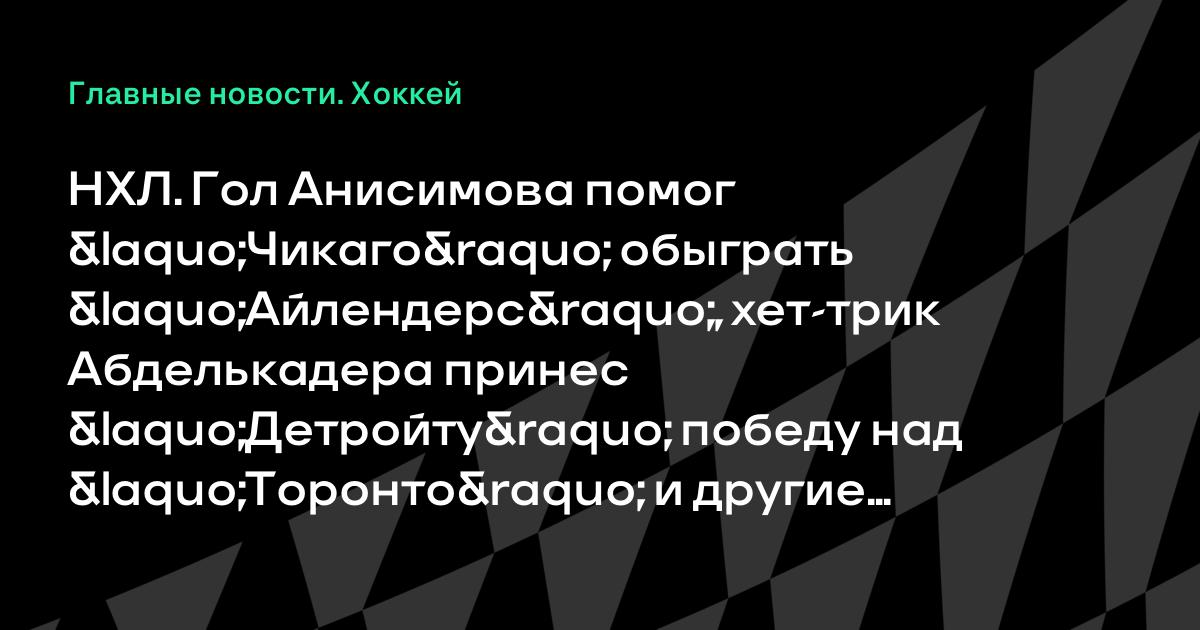 НХЛ. Гол Анисимова помог «Чикаго» обыграть «Айлендерс», хет-трик Абделькадера принес «Детройту» победу над «Торонто» и другие результаты