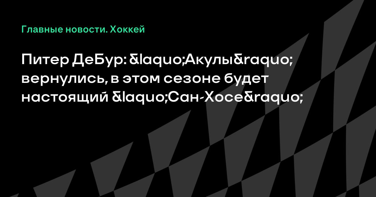 Питер ДеБур: «Акулы» вернулись, в этом сезоне будет настоящий «Сан-Хосе»