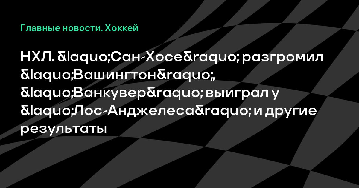 НХЛ. «Сан-Хосе» разгромил «Вашингтон», «Ванкувер» выиграл у «Лос-Анджелеса» и другие результаты