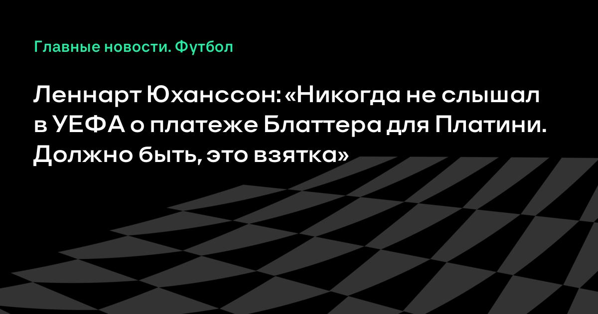 Бывший президент УЕФА Леннарт Юханссон прокомментировал информацию о том, что действующий руководитель организации Мишель Платини получил 2 миллиона швейцарских франков от президента ФИФА Йозефа Блаттера по устному соглашению.