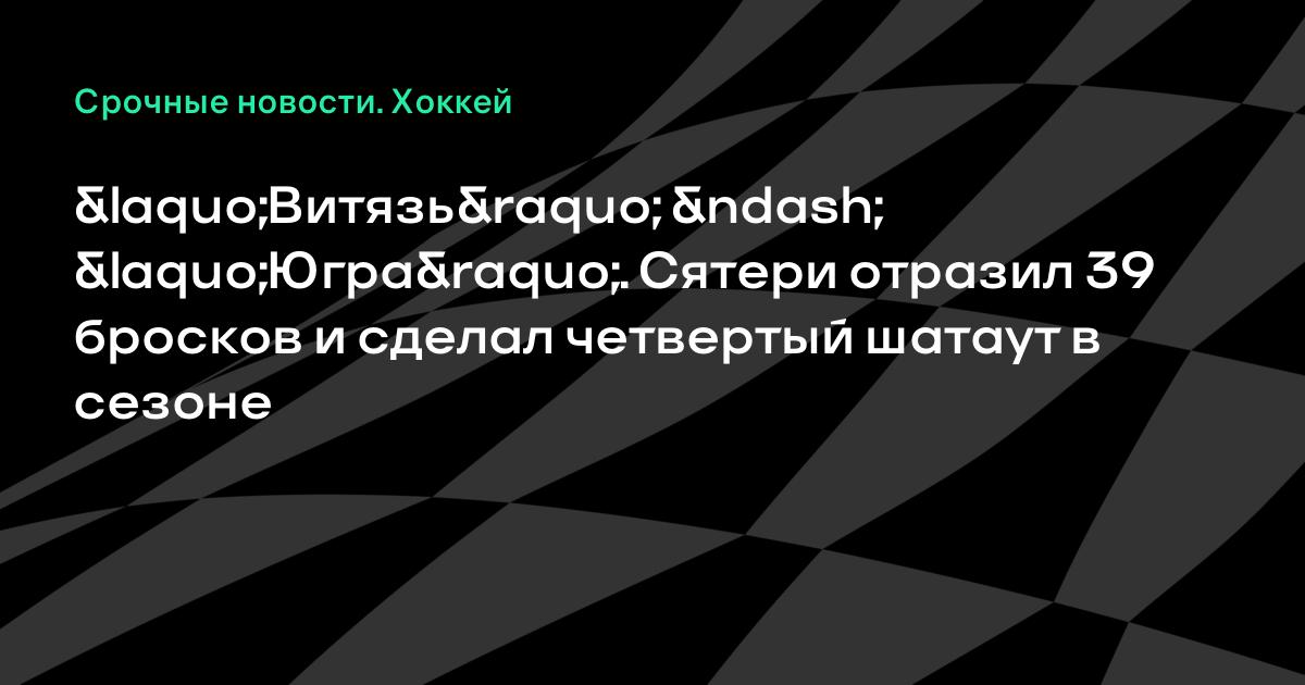 «Витязь» – «Югра». Сятери отразил 39 бросков и сделал четвертый шатаут в сезоне