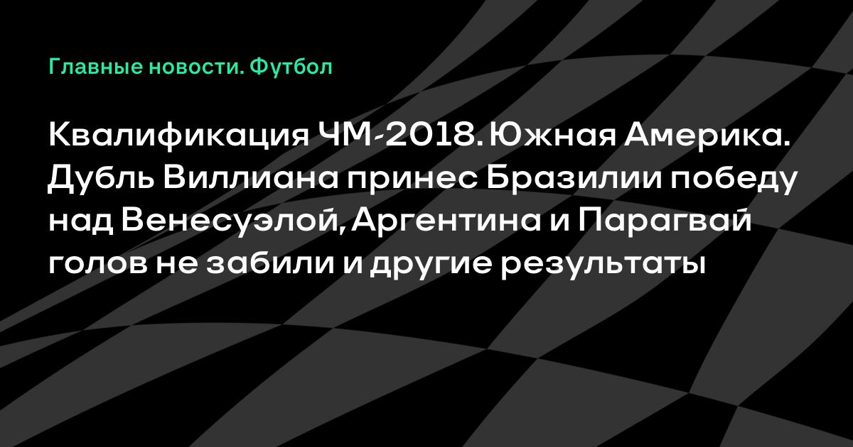 Квалификация ЧМ-2018. Южная Америка. Дубль Виллиана принес Бразилии победу над Венесуэлой, Аргентина и Парагвай голов не забили и другие результаты
