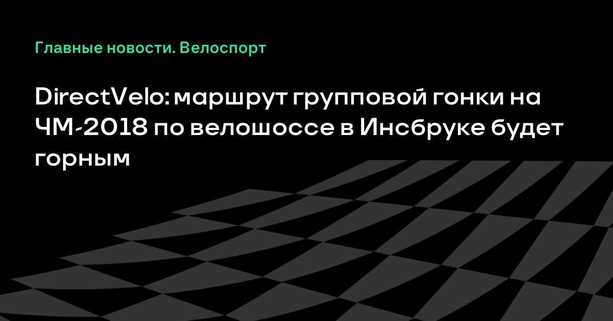 DirectVelo: маршрут групповой гонки на ЧМ-2018 по велошоссе в Инсбруке будет горным