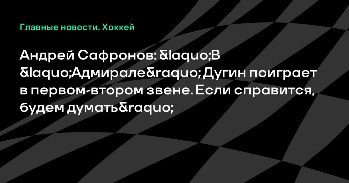 Андрей Сафронов: «В «Адмирале» Дугин поиграет в первом-втором звене. Если справится, будем думать»