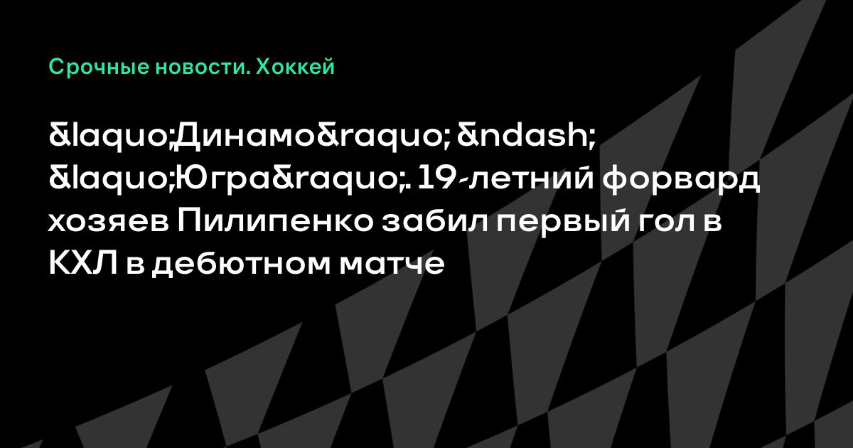 «Динамо» – «Югра». 19-летний форвард хозяев Пилипенко забил первый гол в КХЛ в дебютном матче